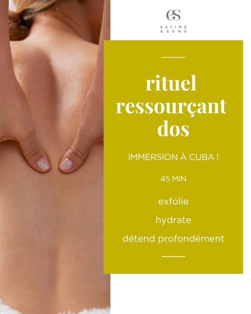 Rituel Ressourçant Dos, Un voyage olfactif direction Cuba ! Un soin complet du dos pour une détente complète et une peau douce pour les vacances et pour prolonger ce voyage ? une eau de toilette escale à Cuba OFFERTE !